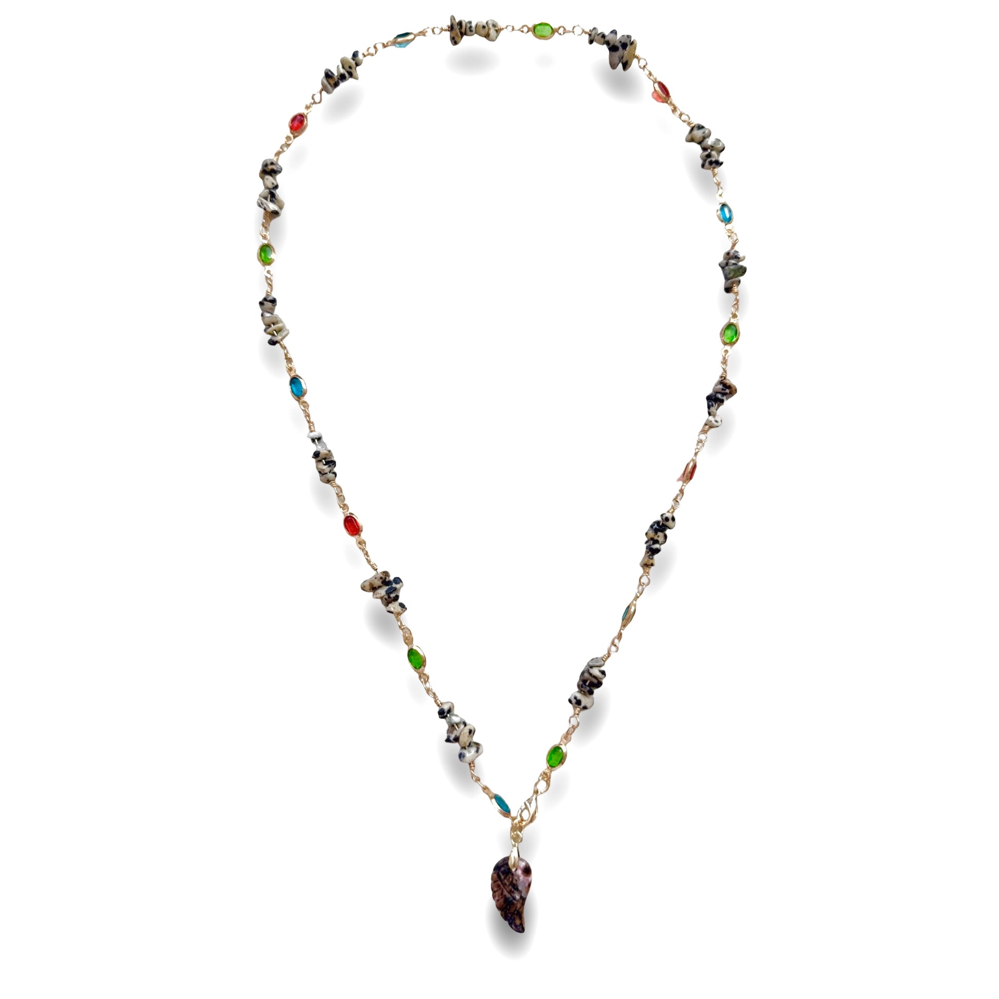 The Angel Wing Blessing Necklace combines natural Dalmatian jasper beads with a handcrafted chain and a rhodonite angel wing pendant. This expertly designed necklace offers multiple styling options, allowing you to wear it as a long regular necklace, a lariat, or adjust its length to suit your preferred look. It beautifully merges natural stones with flexible wearability, making it a distinctive and meaningful accessory.
