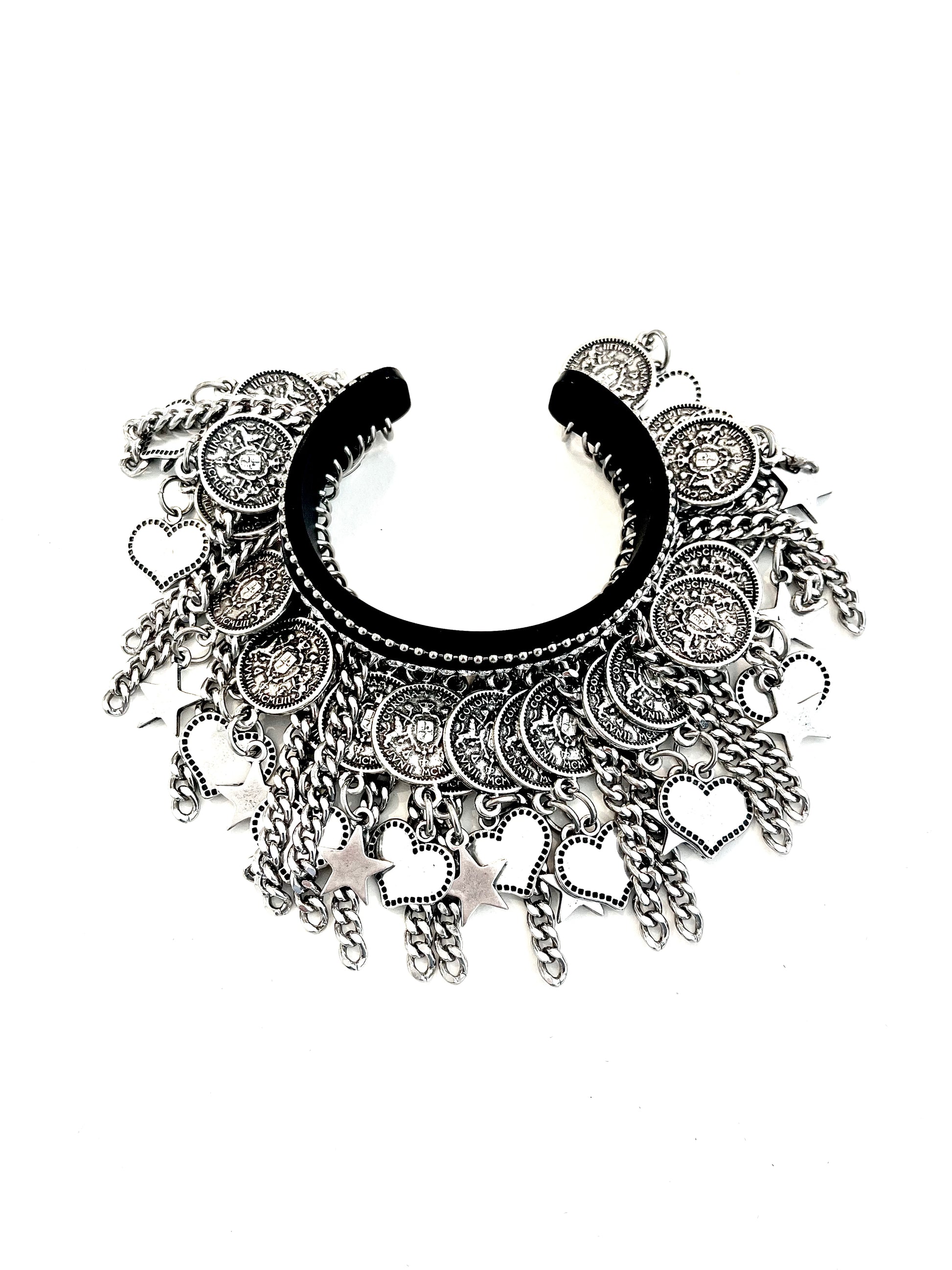 - Black Acrylic with silver aluminum charms