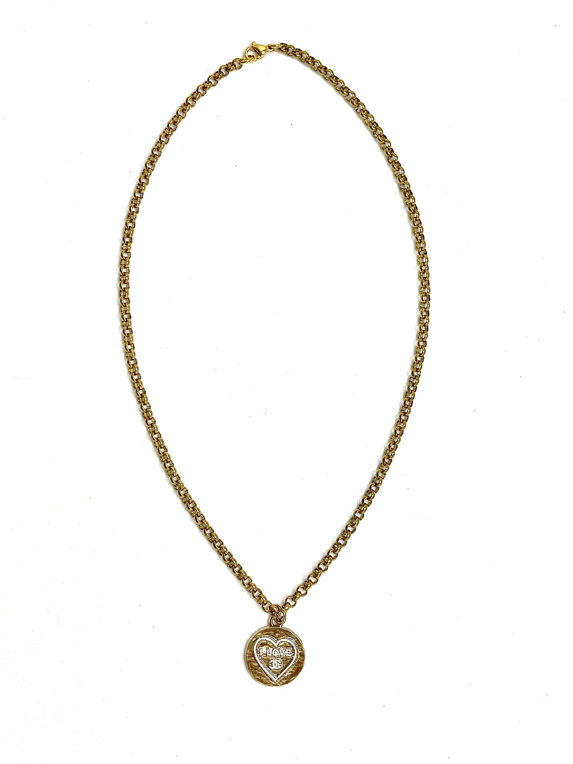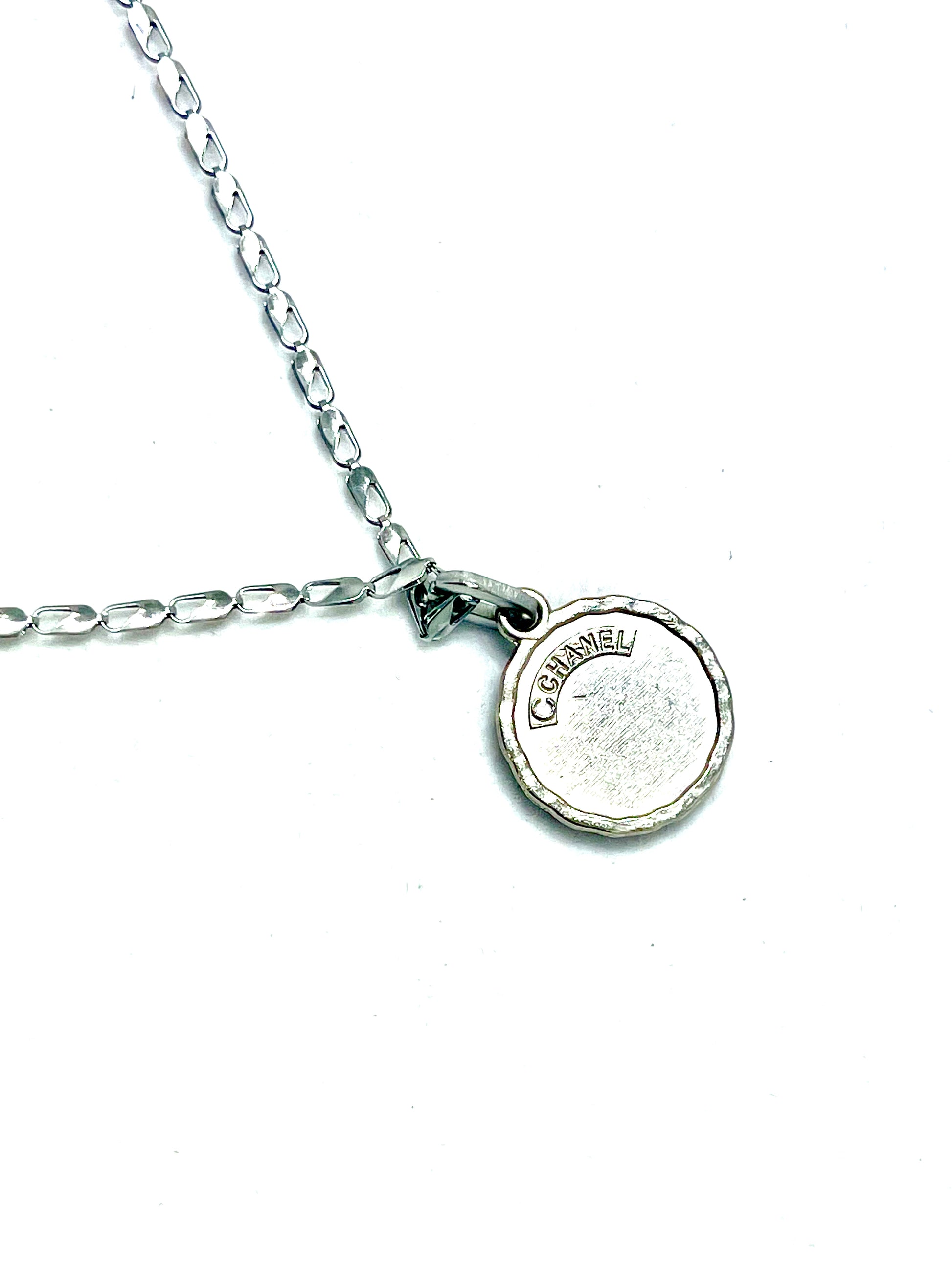 - 20mm Reworked/ Repurposed vintage CC hammered and hand painted with enamel engraving