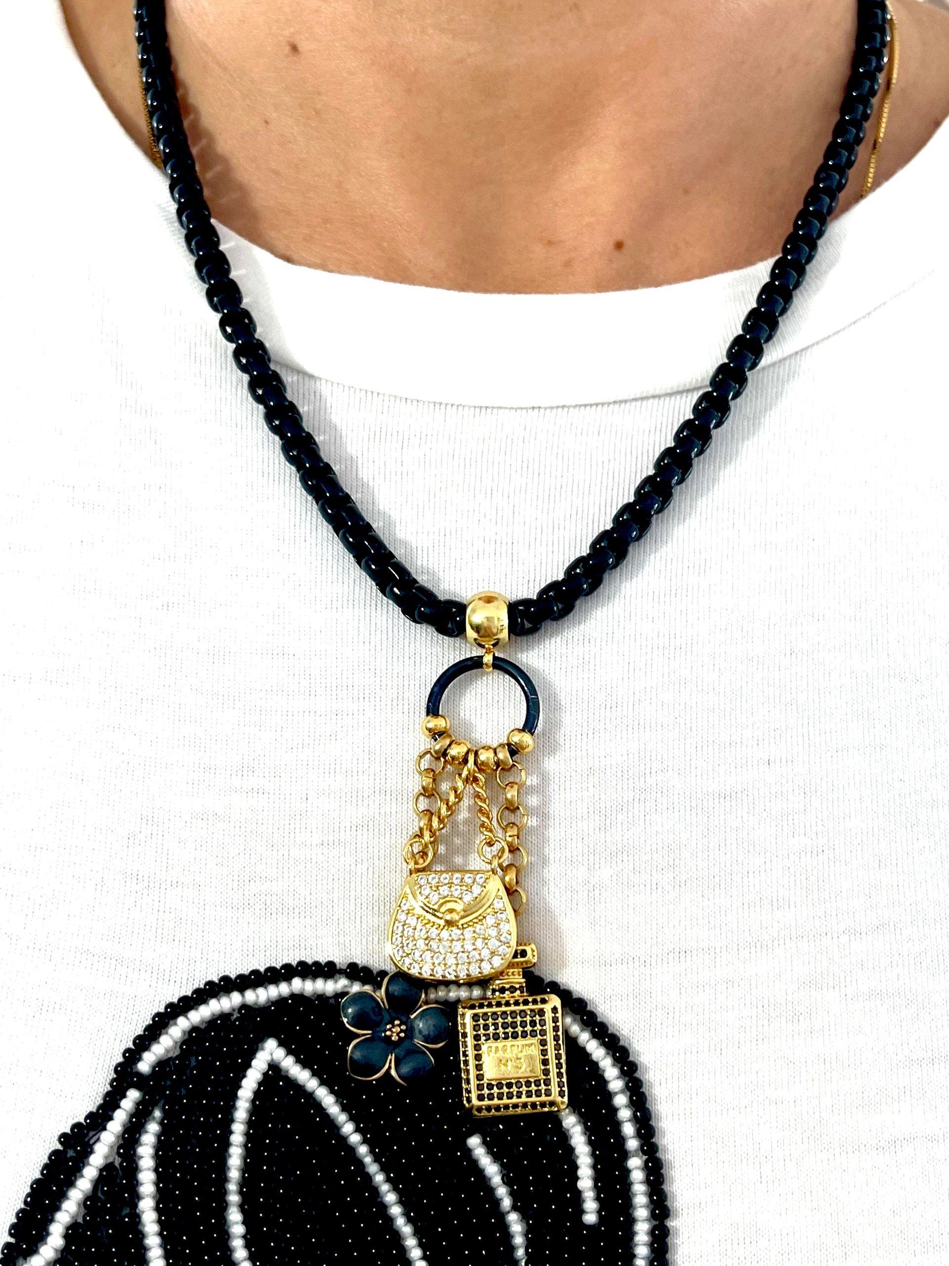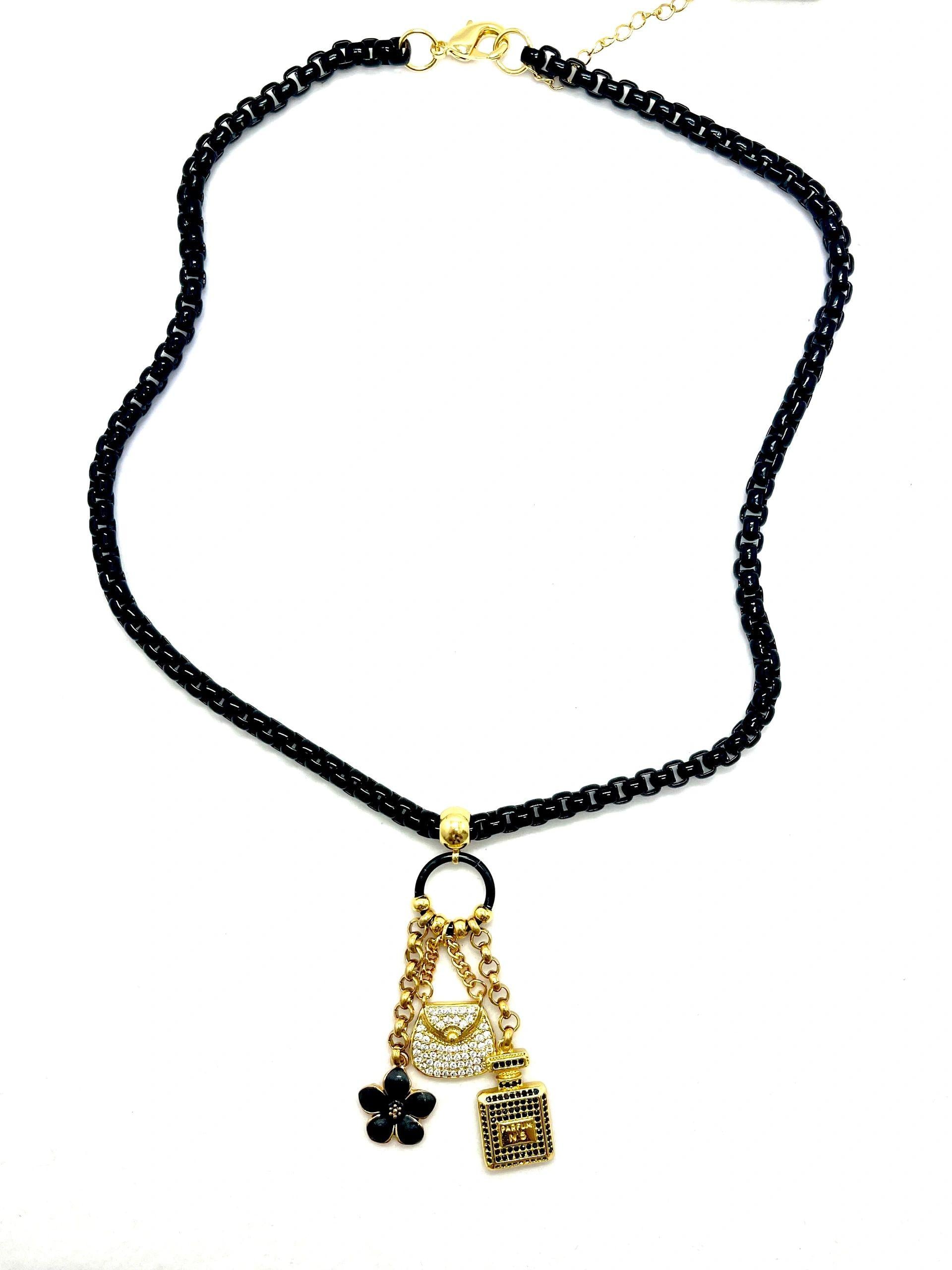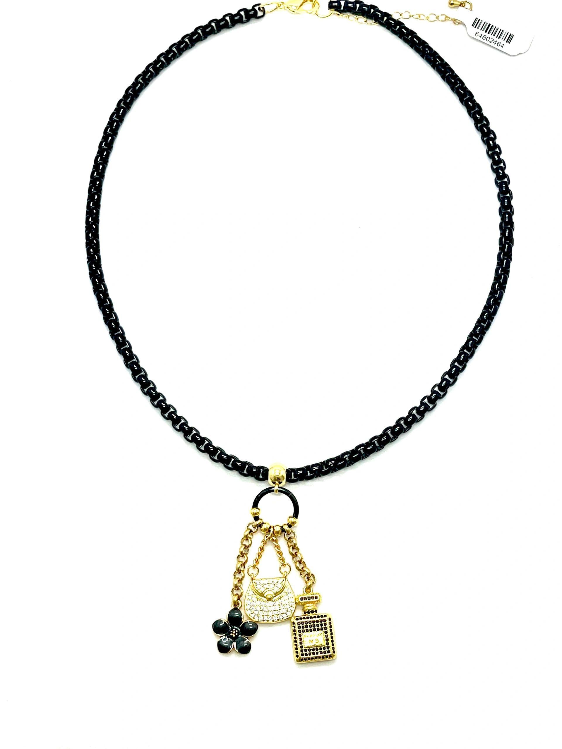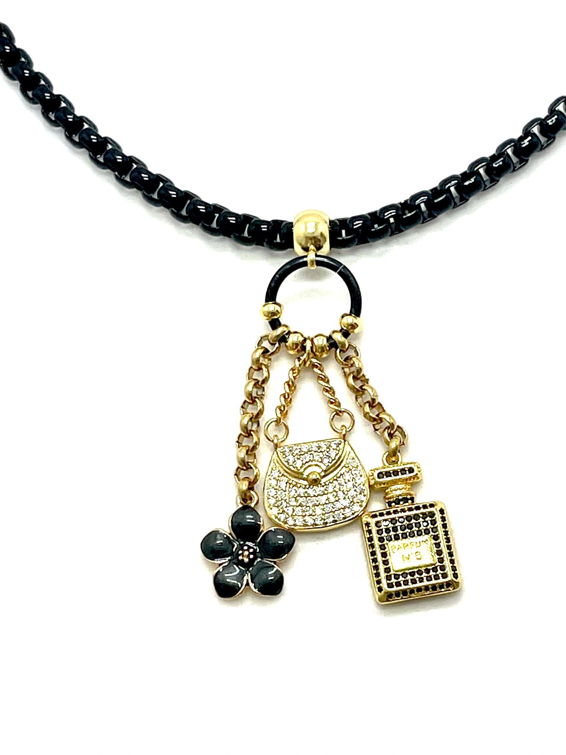 - Three charms: flower, handbag and perfume with pavé zirconia, gold plated