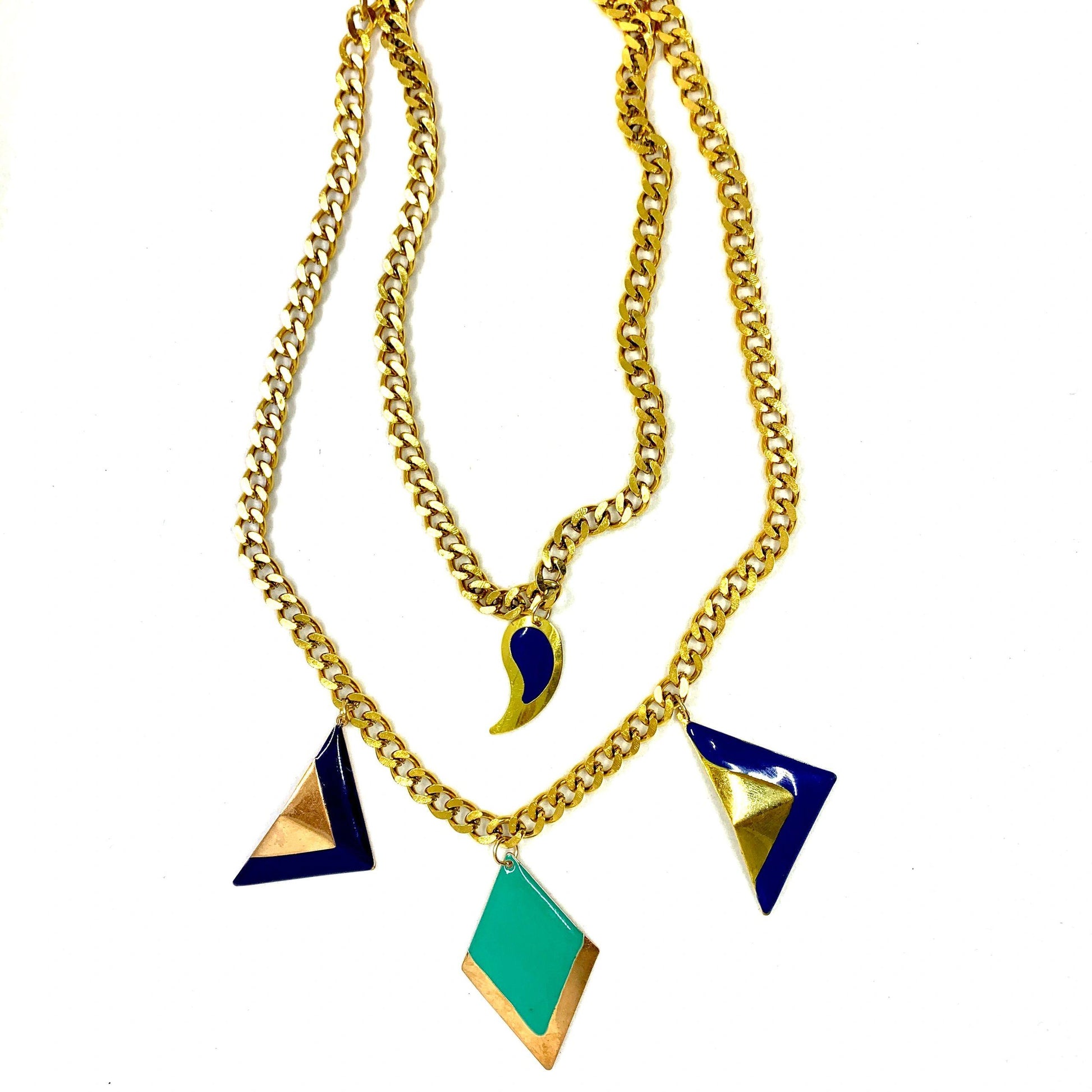 - Handmade Iron and enamel pendants in golden oxide stainless steel cuban chain collection