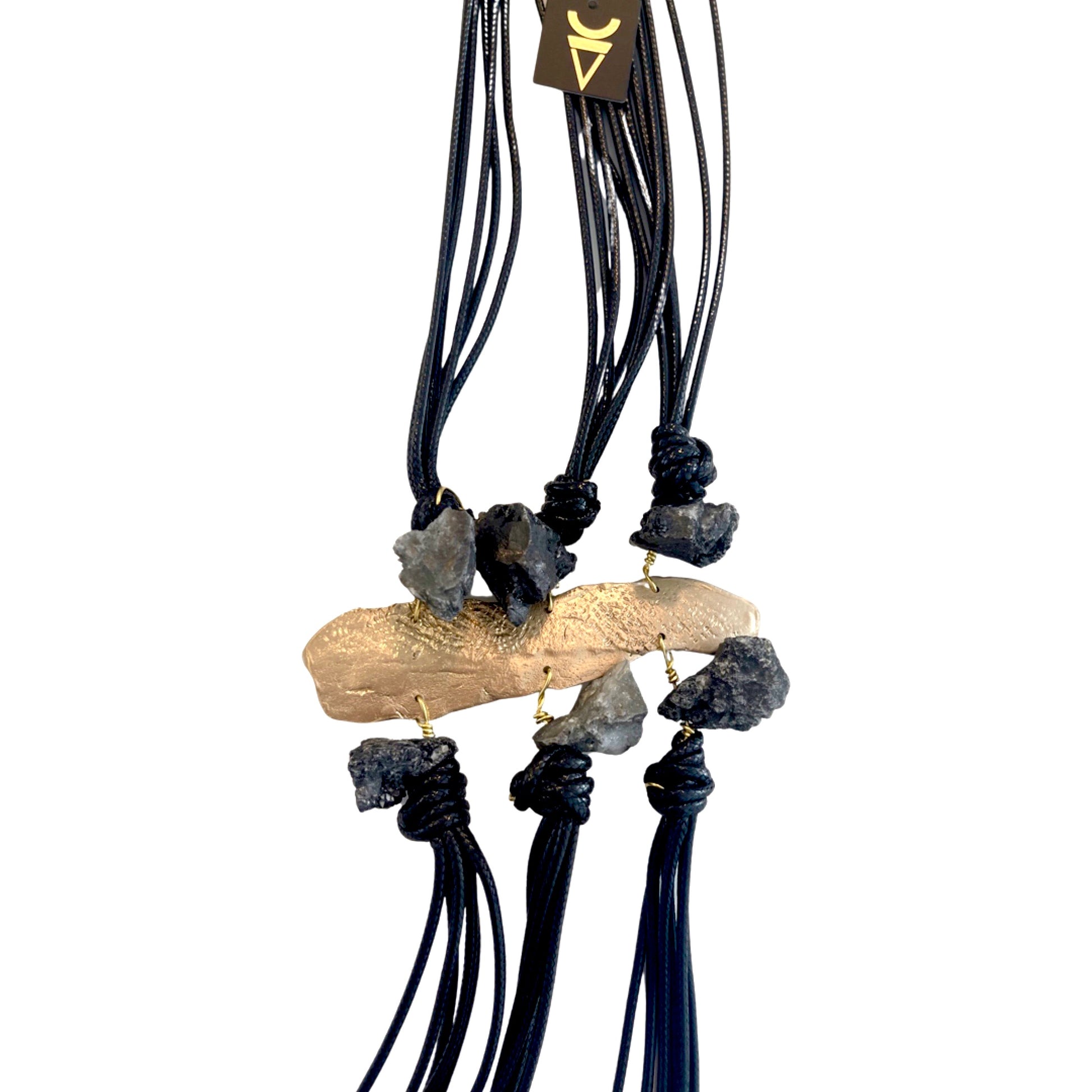 - Synthetic Leather Cords, Raw Stone Crystals & Handmade & 24k Gold Plated Brass Focus Piece