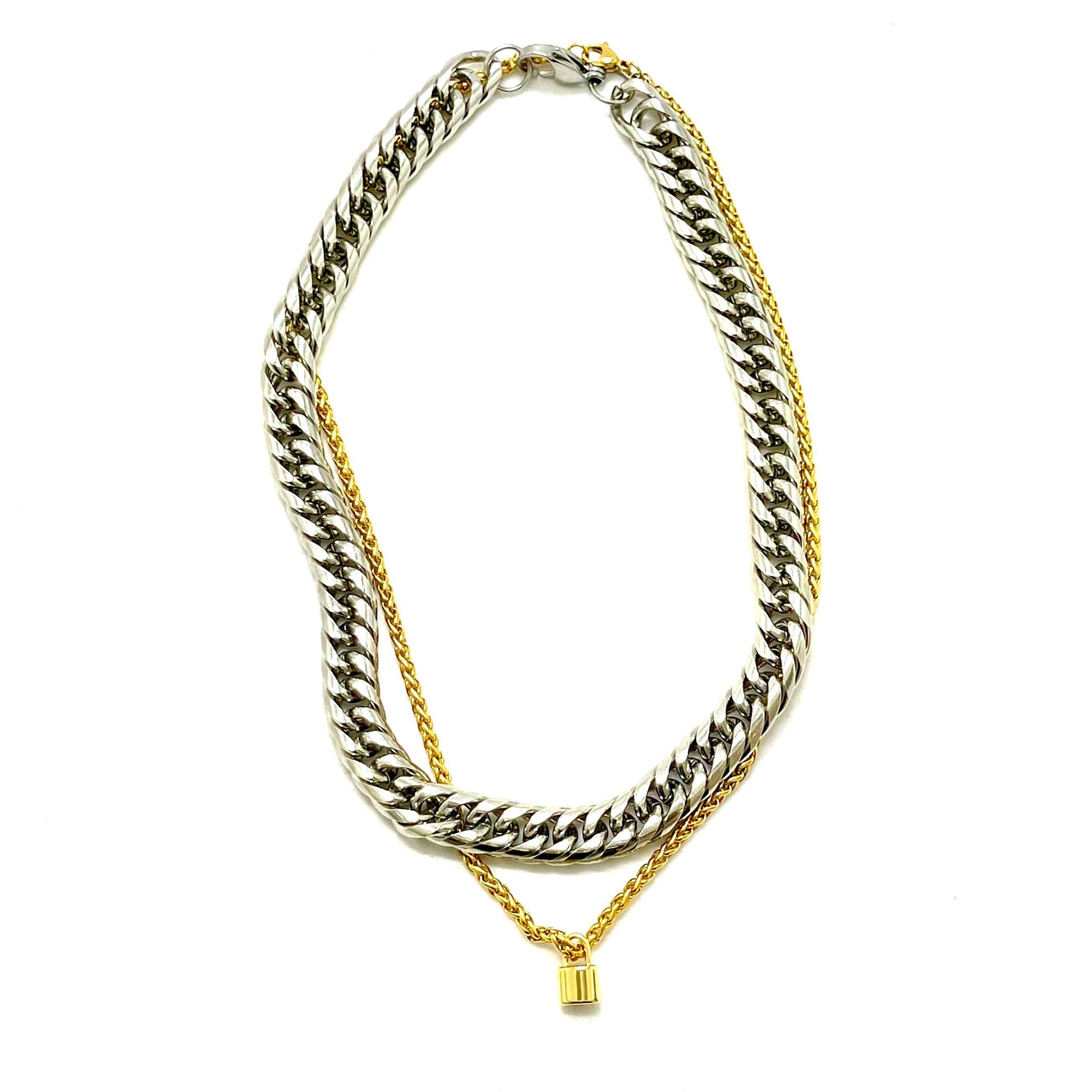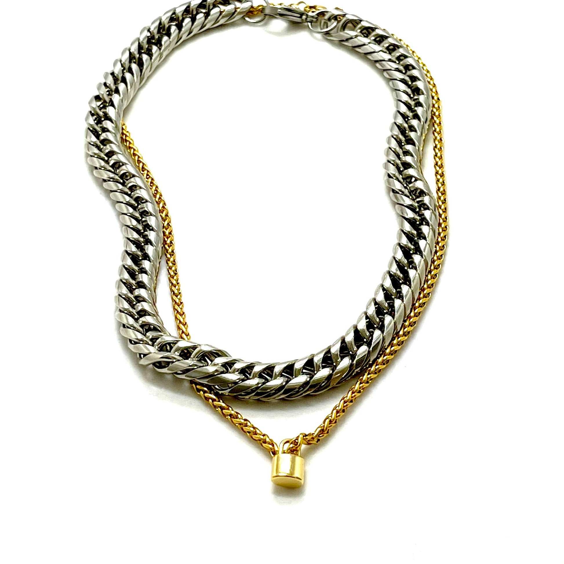 Stainless Steel Mixed Chain Set with Padlock Pendant