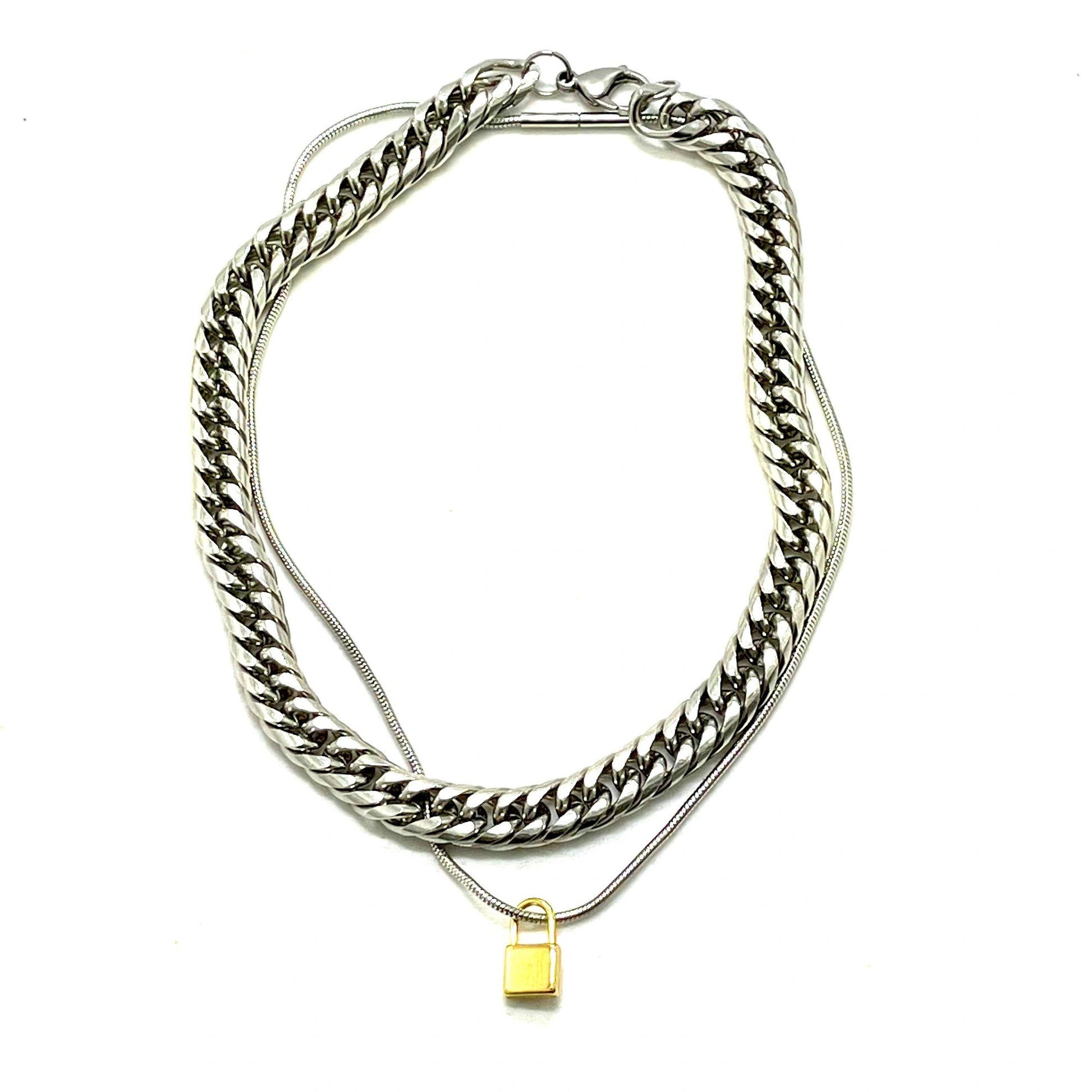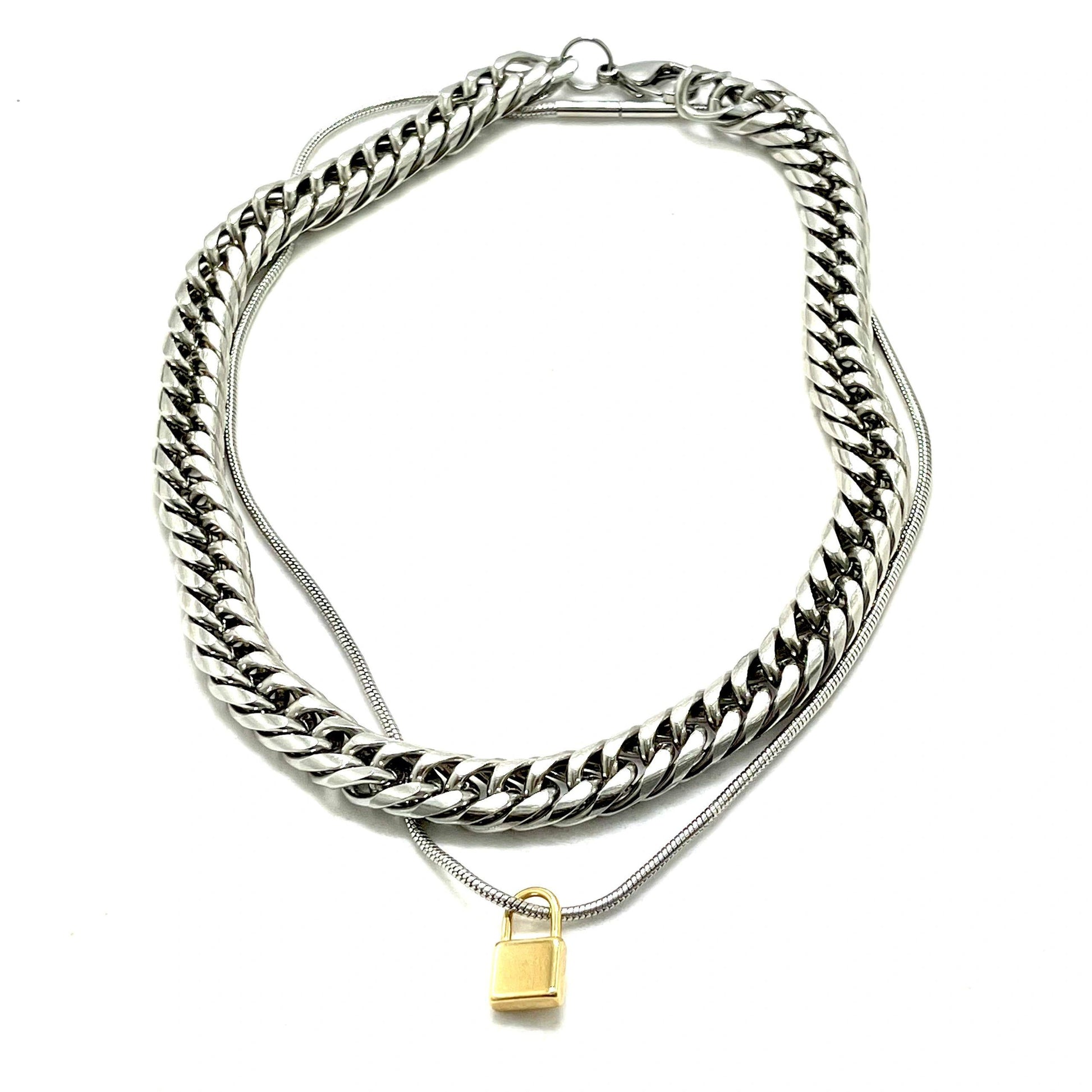 Stainless Steel Mixed Chain Set with Padlock Pendant