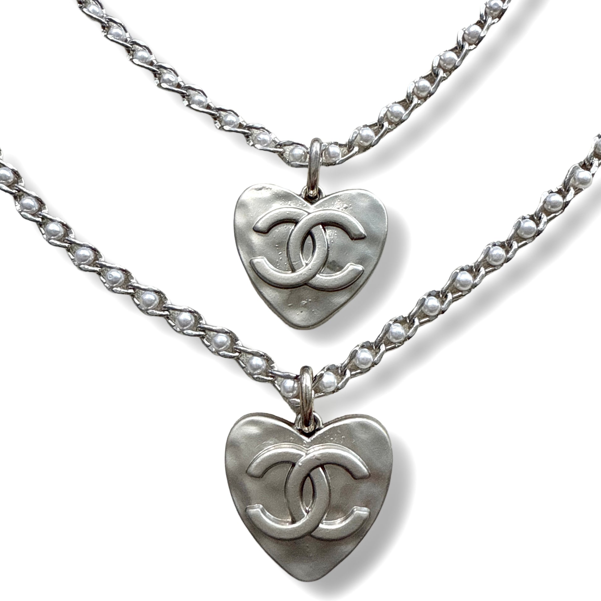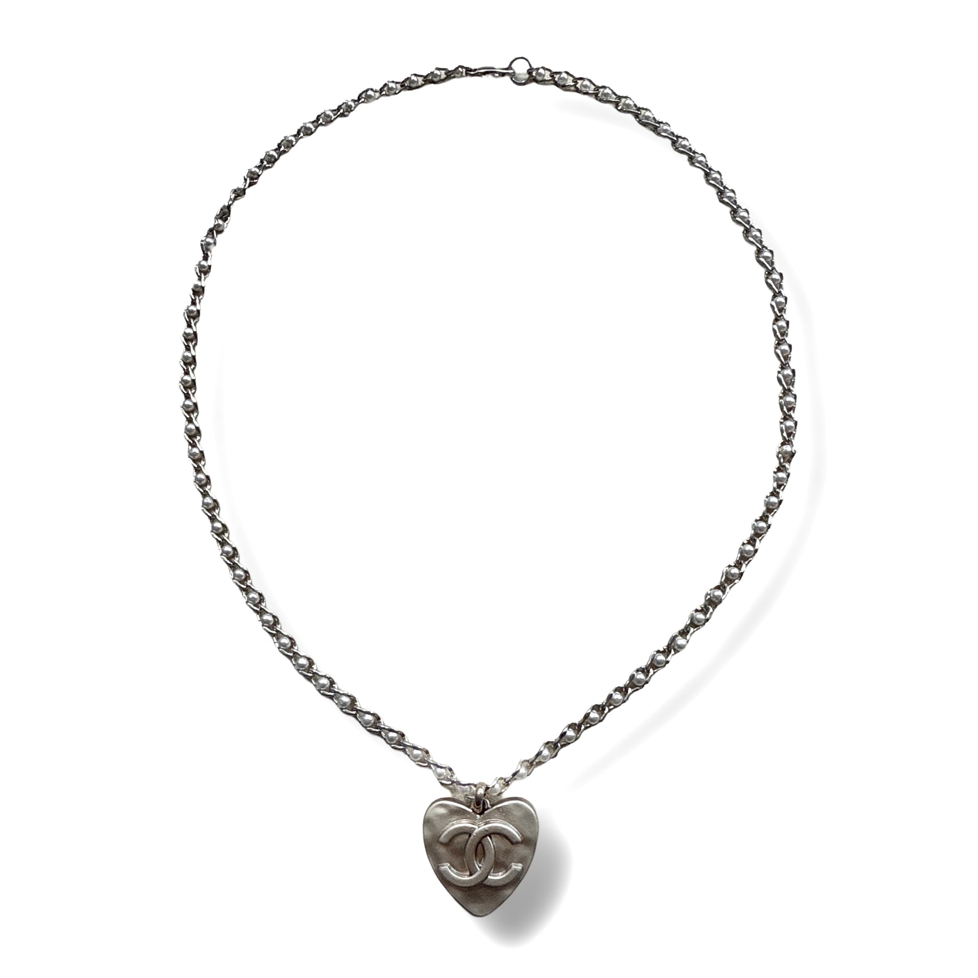 Vintage CC Hammered Silver Heart Re-Worked Necklace